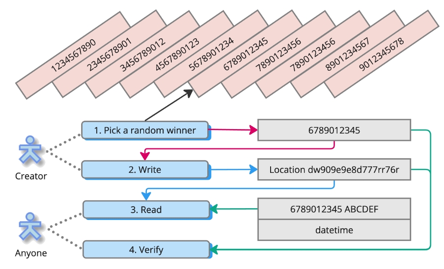 Anyone with the location can read the winning ticket number and see when the draw was taken.