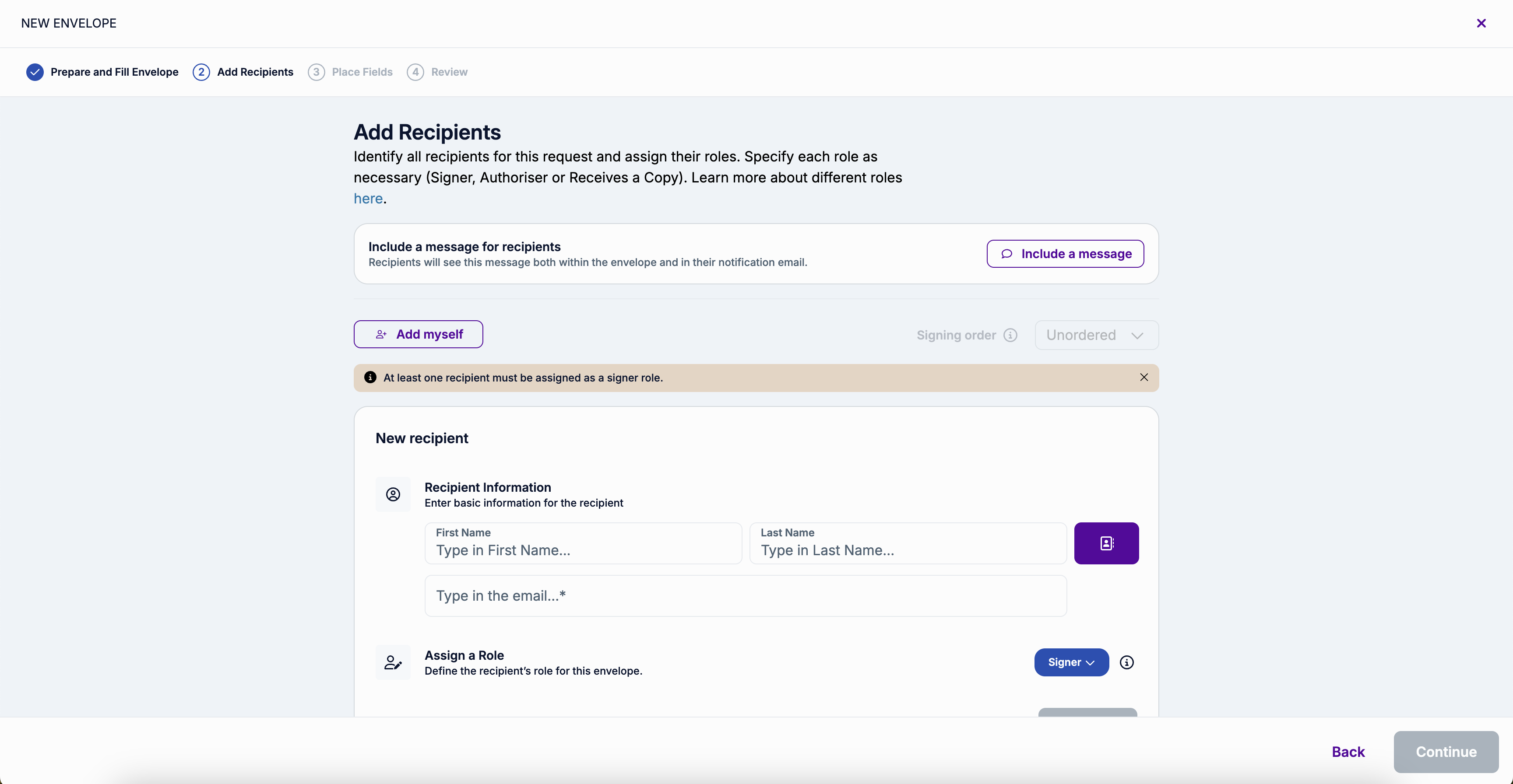 For each recipient, you can specify their role. Read more about different roles.
