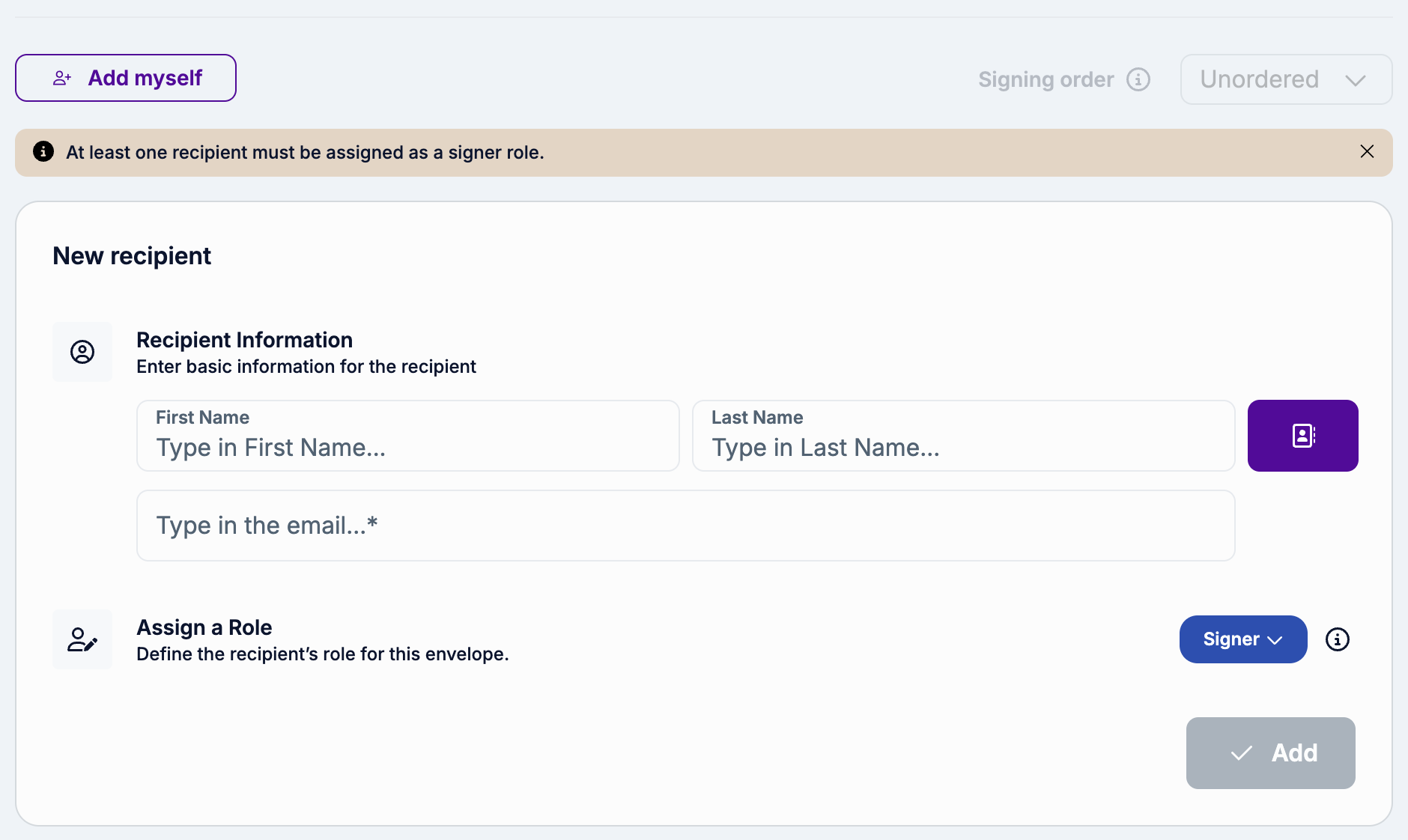 Add the required recipients for the signature request.