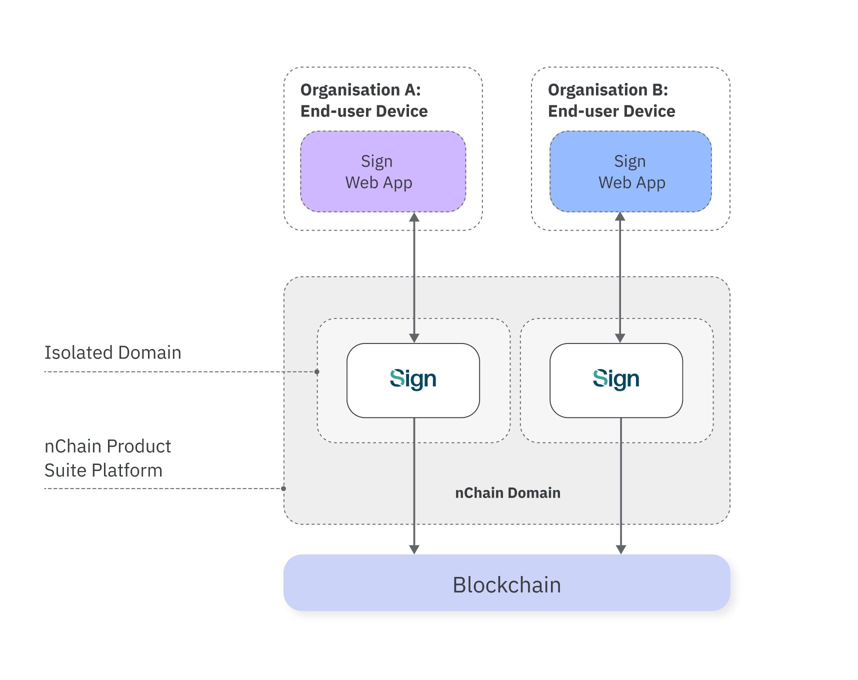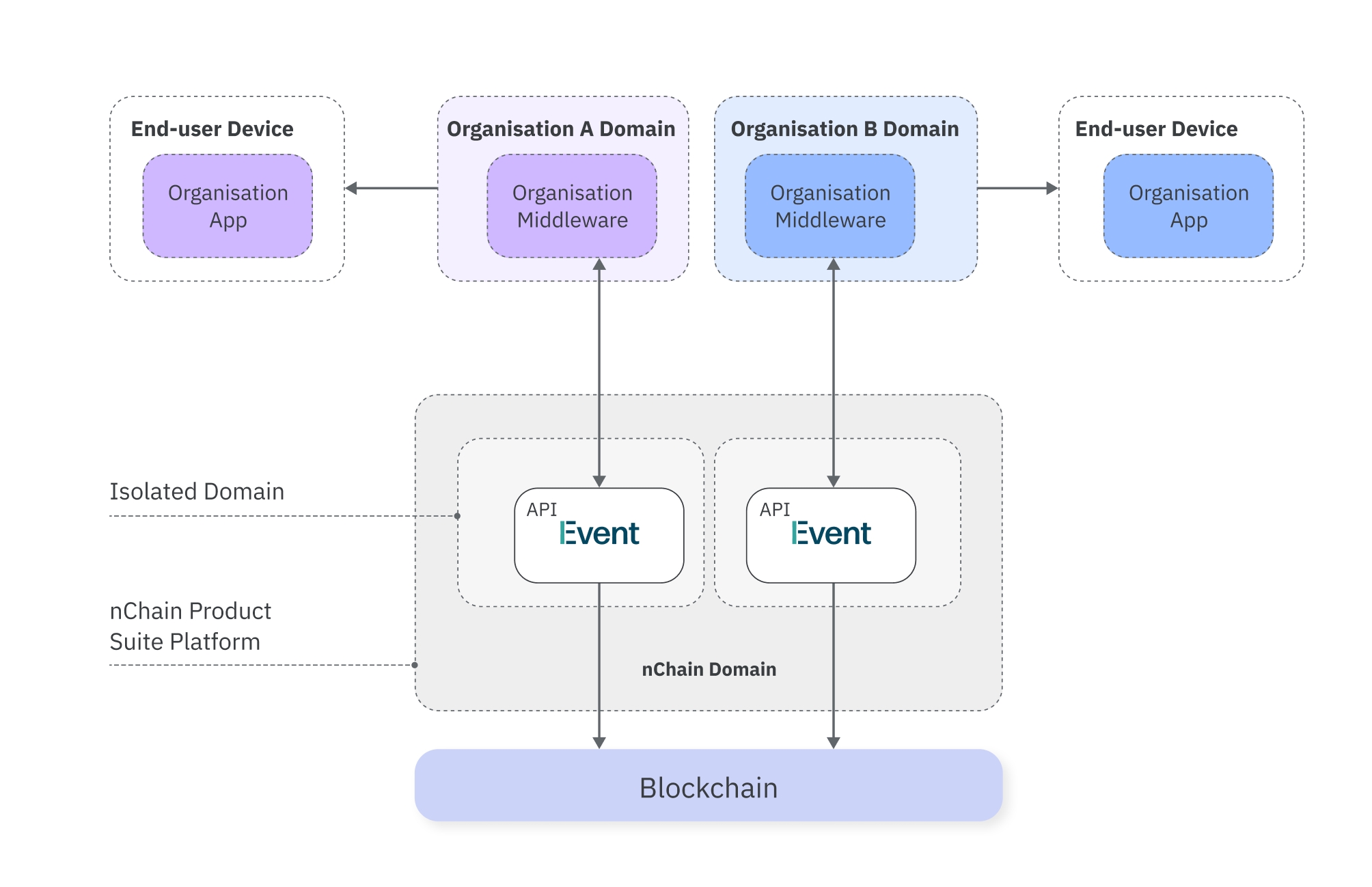 Each Product Environment handles the connection and transmission of data to the blockchain as required by the Product